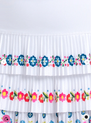 Spanish florals and vibrant colors come together in this multi-pleat tiered skirt. Crafted from lightweight performance fabrics, this skirt is sure to bring a lot of fun and free-flowing movement to your game.