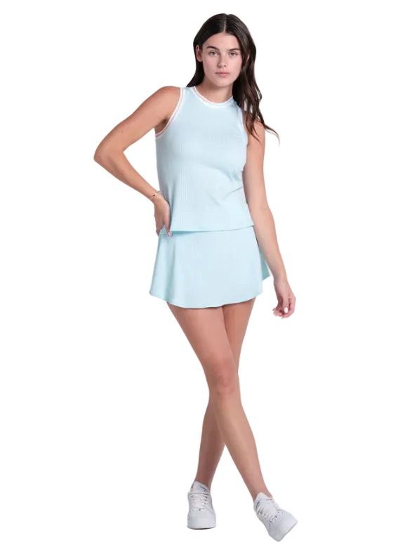 Crafted in our luxurious performance rib fabric, this high neck tank is designed for those who love to make a statement while playing. Featuring a flattering neckline and contrast stripe details for a modern look with delightful retro vibes.