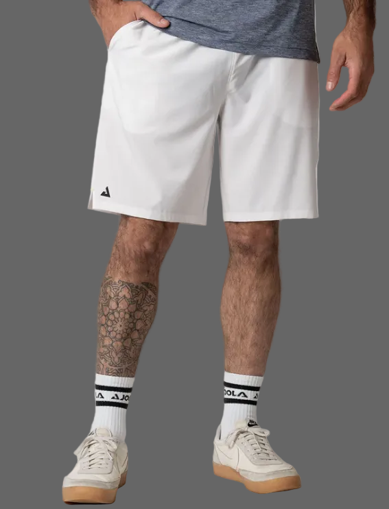 Match the pace of the modern game with stylish shorts designed to move with you. No matter what your skill level is, compete in comfort with these moisture-wicking, quick-dry shorts. JOOLA men’s pickleball woven shorts are breathable and lightweight. Each pair features an invisible zipper pocket on the back, hem-vents on the side seams and a grown-on waistband w/interior infinity drawcord. Elevate your performance and glide through life in JOOLA apparel.